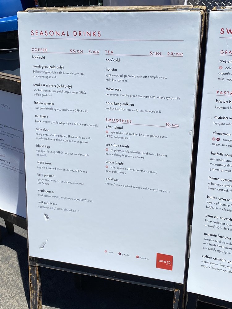 Welcome to SPRO - Mission Bay/SOMA, a charming coffee spot nestled at 601 Mission Bay Boulevard North, San Francisco. Renowned for its unique and inventive menu, SPRO offers an array of fancy drinks, including the indulgent Spice Islands Drink featuring dark chocolate and spices, and the delightful Geisha Drink with ceremonial-grade matcha and honey.
